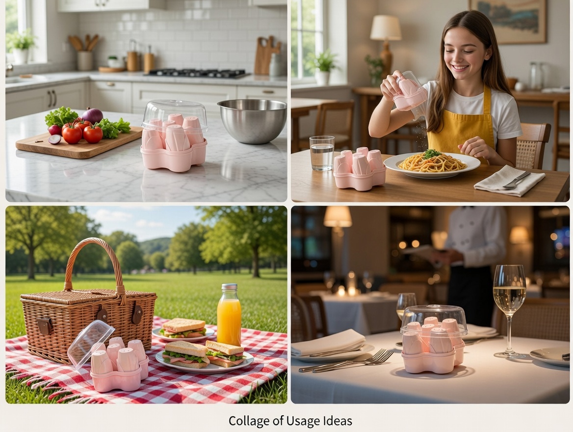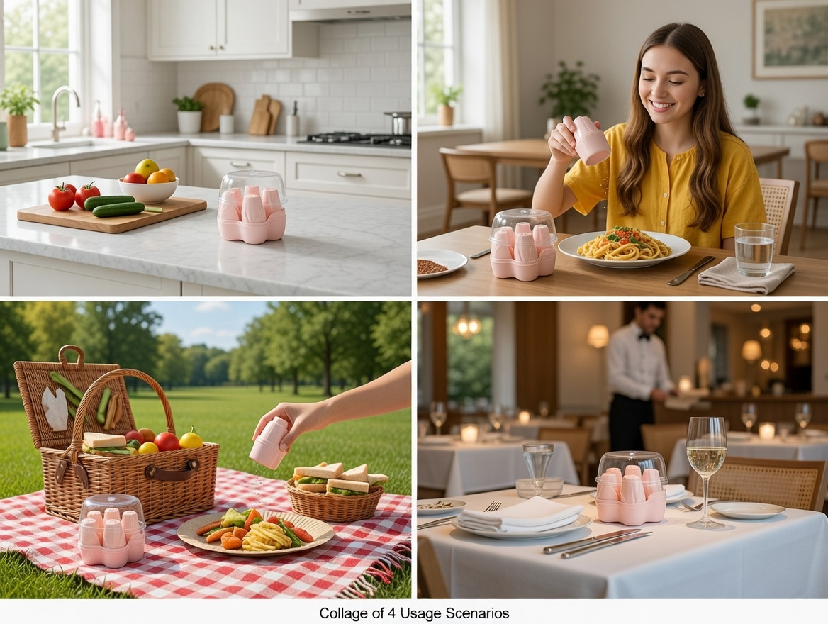 Organize your kitchen in style with this Round 6-Piece Adjustable Spice Shaker Set. Featuring a sleek circular design and easy-flow adjustable lids, it ensures smooth, controlled seasoning while keeping your spices neatly stored and fresh.