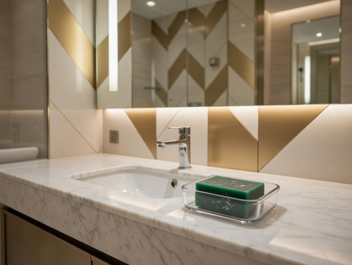 Its compact and stylish design fits perfectly on bathroom sinks, kitchen counters, or wash areas without taking up extra space. The sturdy construction ensures durability, while the smooth surface makes it easy to clean and maintain.